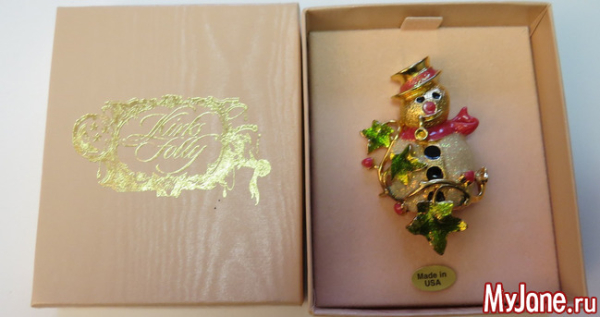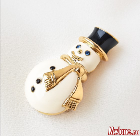 Нашла чем порадовать любительниц новогодних праздников и созданная в 1960 году американская компания Fitz and Floyd, достаточно широко известная как производитель керамической посуды, а также авторских сувениров для дома. Однако время от времени данная компания предлагала вниманию покупателей и очень эффектные и выразительные бижутерные коллекции, в которых нашлось место и вот такому великолепному снеговику. Кстати, стоил этот снеговик очень дорого, да и сейчас, если вдруг кто-то решит продать такого винтажного красавца, цена на него тоже вряд ли окажется демократичной!